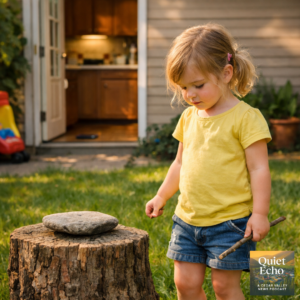 Here is what I noticed about my daughter on Tuesday. After about five minutes of standing on the grass looking lost, she found a stick. Then she found a rock. Then she put the rock on a stump and hit it with the stick. Then she found another rock and did it again. Within fifteen minutes she had a game — no rules, no instructions, no algorithm feeding her the next piece of content. She invented it. From nothing. The way children have invented games from nothing since before anyone was keeping track.